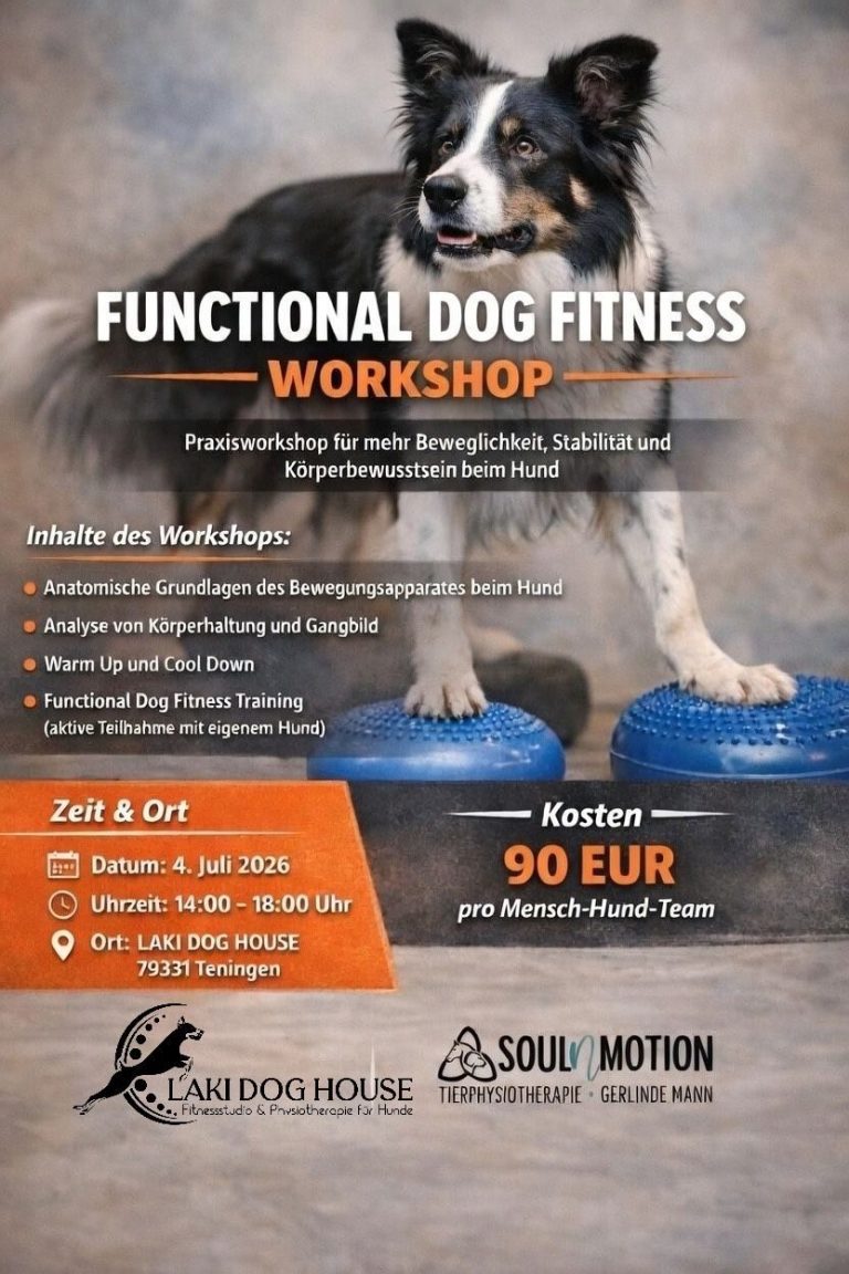 Laki Dog House und Soulnmotion laden Dich zu einem praxisorientierten Workshop rund um Functional Dog Fitness ein.